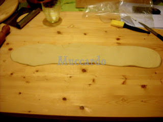Dopo aver lavorato a lungo la pasta e averla lasciata riposare la classica mezz'ora, la si stende e si formano delle strisce non troppo lunghe, che andranno poggiate sulla chitarra.