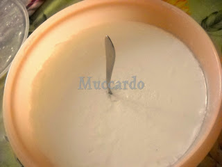 Ah, per scrupolo, e mantenere costante la temperatura del latte in fermentazione occore anche una copertina o, come nel mio caso, una bella sciarpona di lana. Se rossa meglio.