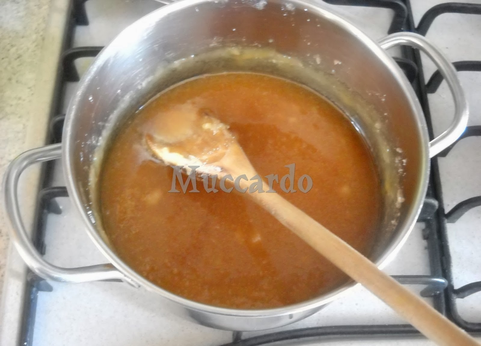 Cercare di bagnare ogni tanto le pareti con un pennello da cucina intriso d'acqua per togliere eventuali granelli di zucchero o schizzi di caramello che possano bruciare e dare alla salsa un sapore amarognolo.