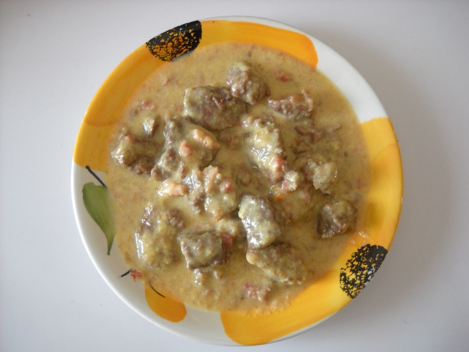 Quando la carne è arrivata a cottura (accertatevi che non si asciughi troppo ma resti un fondo liqudo di succosa salsetta di carne) si prepara la veste: in una scodella si batte l'uovo con il succo di limone e il parmigiano, così, una bella cremina che verseremo sullo spezzatino, a fuoco spento (mi raccomando), mescolando poi bene per far rassodare, ma non troppo, l'uovo.