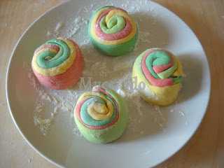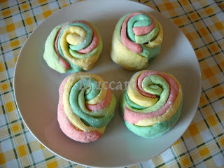 A questo punto si cuoce al microonde per 5 minuti a 500W, ruotando ogni tando il supporto di cottura. Ecco i miei "panini pastello" :