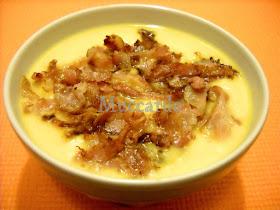 In un pentolino preparare della crema pasticcera soda alla lavanda, dose da un uovo.