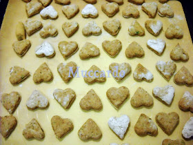 Stendere la pasta e con una formina a piacere ricavare tanti bei biscottini, che si disporranno su due teglie coperte da carta forno.