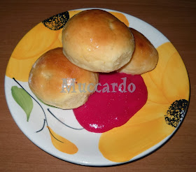 Quindi sfornare le brioscine, e se si vogliono lucidare si possono spennellare con uno sciroppo di acqua e zucchero lasciato bollire qualche minuto (il tempo di per farlo addensare) e far asciugare un paio di minuti in forno.