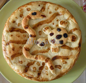 Unica cosa che occorre sapere è che a metà cottura è meglio coprire con un foglio di alluminio la superficie della torta, per non far scurire troppo le parti non disegnate.