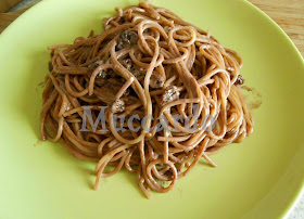 Portare a bollore, quindi condire gli spaghetti con questa “salsa dolce e profumata” - stavolta sono parole mie, eh?