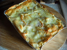 Ungere il fondo della teglia con poco olio, mettere uno strato di carasau ammollato nel brodo, il pecorino fresco a fettine, altro strato di carasau ammollato, il lesso sbriciolato, il pecorino grattugiato, strato di carasau ammollato...